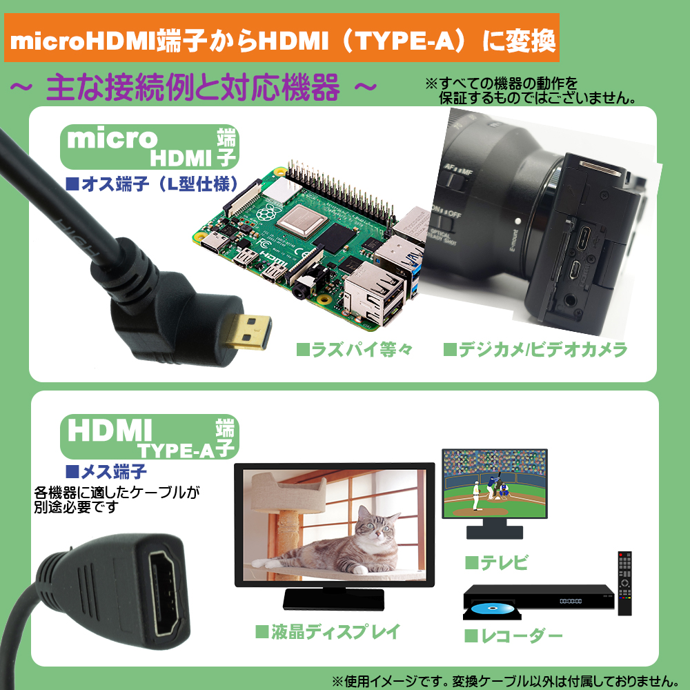 対応デバイス:microHDMI端子搭載機器(デジカメ、ビデオカメラ、パソコン、ラズパイ等)