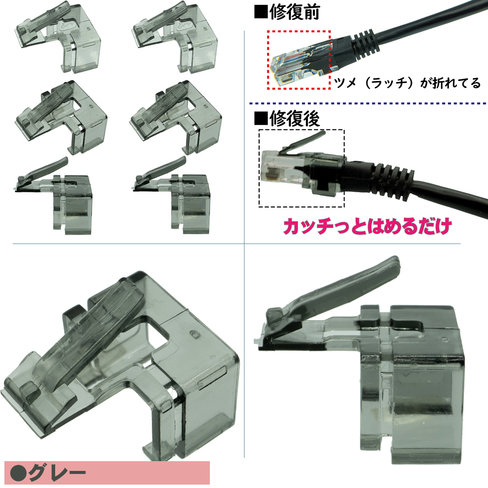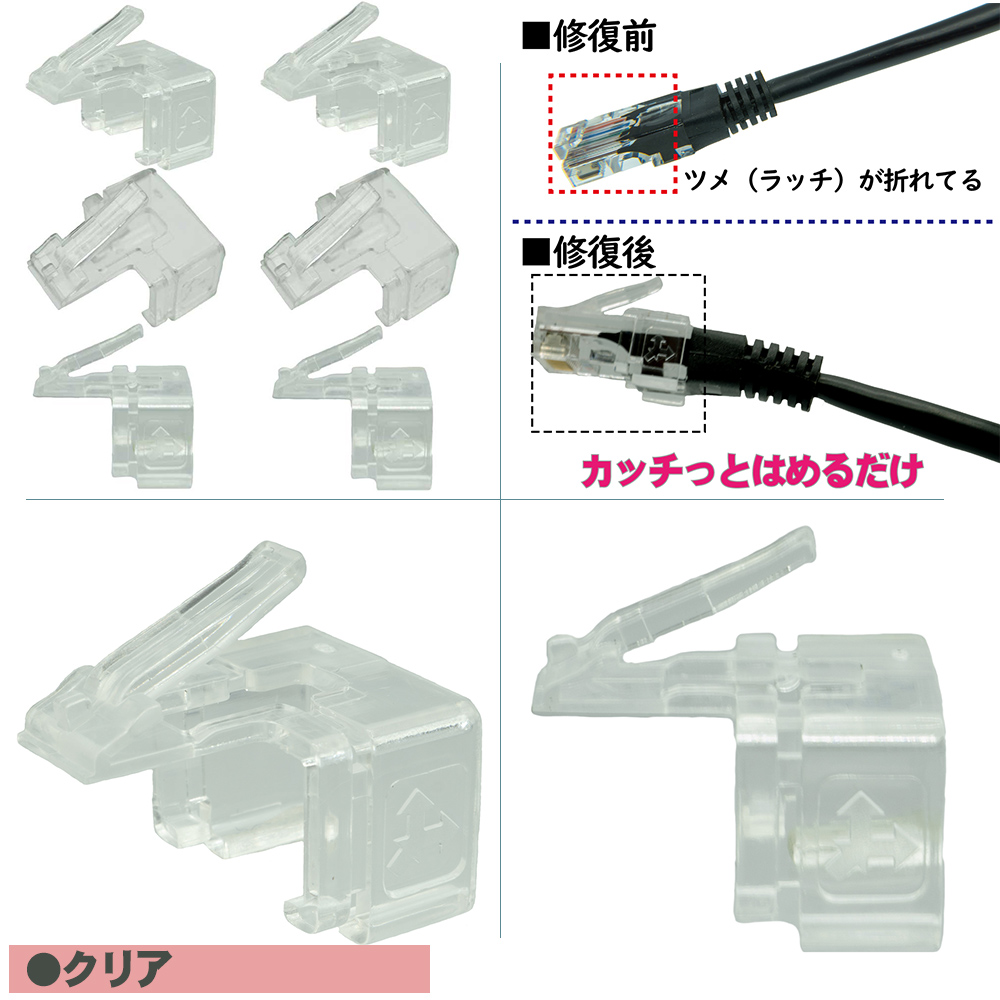 LANケーブルの爪が折れてしまった際に修復する為のパーツです。
