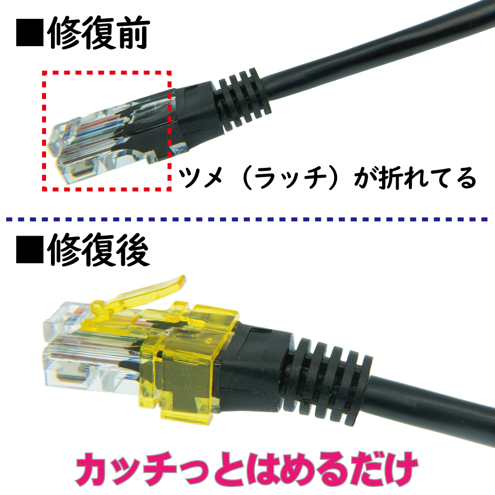 LANケーブルの端子のツメが折れて着脱できなくなったケーブルにご利用いただけます。
